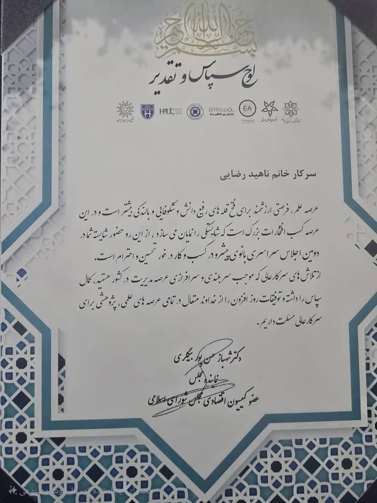 در جریان برگزاری یک اجلاس کشوری در حوزه سلامت روان و سفیران سلامت و تندرستی که به همت «مجمع مدیران ایران» برگزار شد، سرکار خانم دکتر آناهید رضایی، مدیر و مؤسس مجموعه «ذهن روشن»، بهعنوان بانوی نامی حوزه سلامت روان کشور انتخاب و با اهدای تندیس، مورد تقدیر قرار گرفت.
